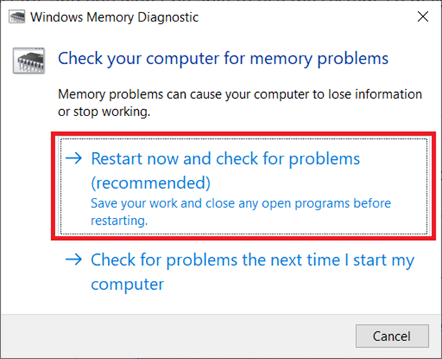 3.Sonra tıklayınŞimdi yeniden başlatın ve sorunları kontrol edinSisteminizdeki bellek sorunlarını kontrol etme seçeneği.