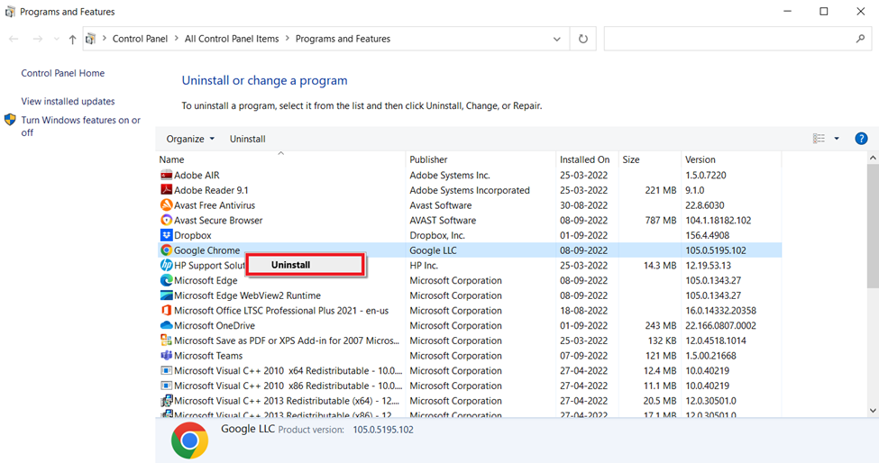 3.Bulun ve sağ tıklayınGoogle Chrome'un Kanarya Sürümüve seçKaldırmak.
