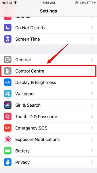 7. İPhone'daki uygulamalardaki kontrol merkezini etkinleştirin (yalnızca ana düğme iPhone modelleri)