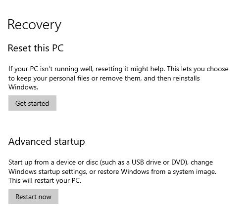 1. Adım:Erişim Ayarları> Güncelleme ve Güvenlik> Kurtarma.