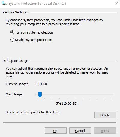Yöntem 3: Sistem Geri Yükleme Disk Alanı Kullanımını Özelleştirin