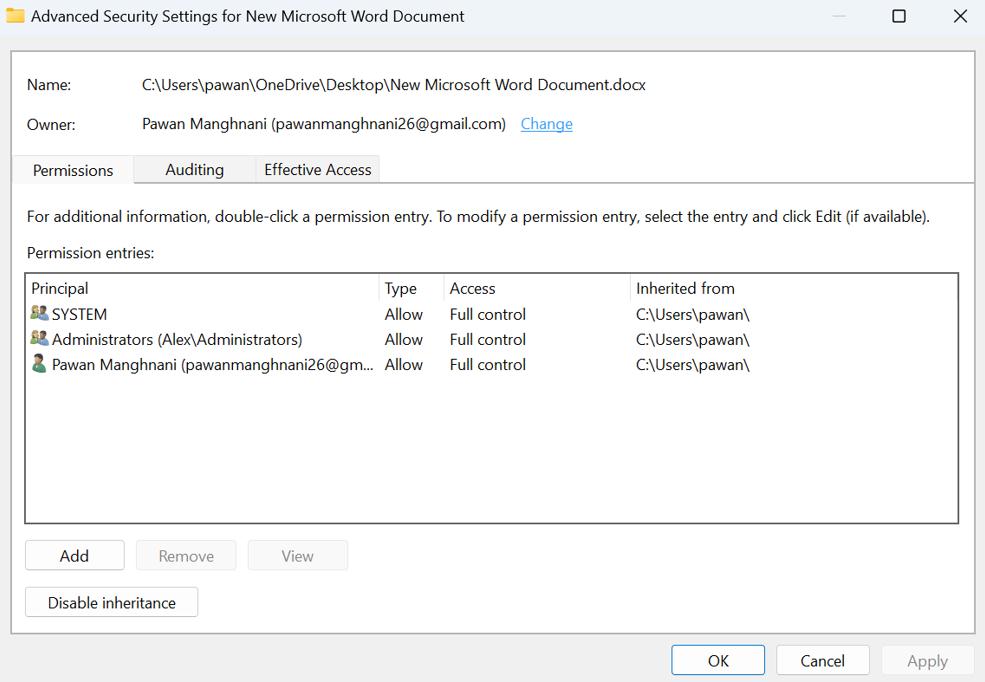 3. Adım:Kullanıcı adınızın sahibinin yanındaki dosyanın veya klasörün sahibi olarak gösterilip gösterilmediğini görün. Değilse, sorun bu olabilir.