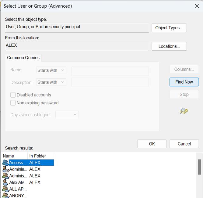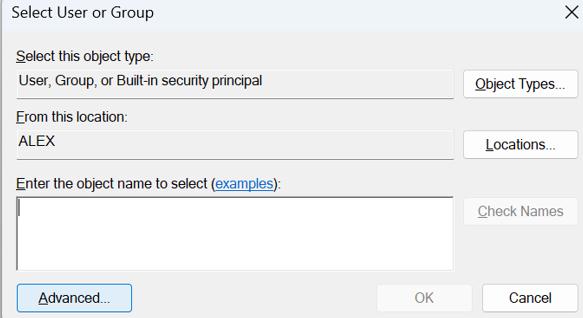 4. Adım:Seç kullanıcı veya grup penceresine erişmek için yanındaki değiştirme bağlantısını tıklayın.