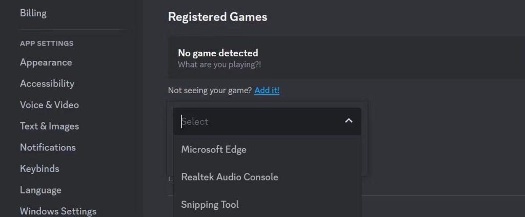 Adım 7:TıklamakEkle!Discord oyunu otomatik olarak tanıyamıyorsa, açılır menüden oyunu seçtikten sonra.