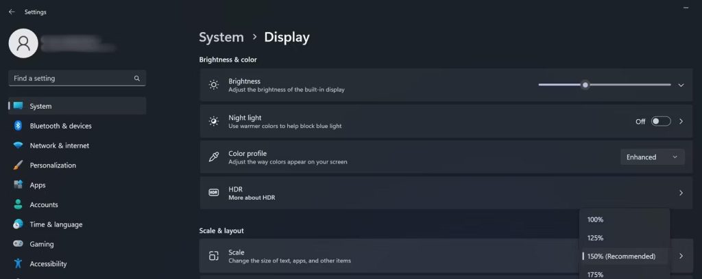Yöntem 3: Önerilen ekran ölçeklendirmesini seçin