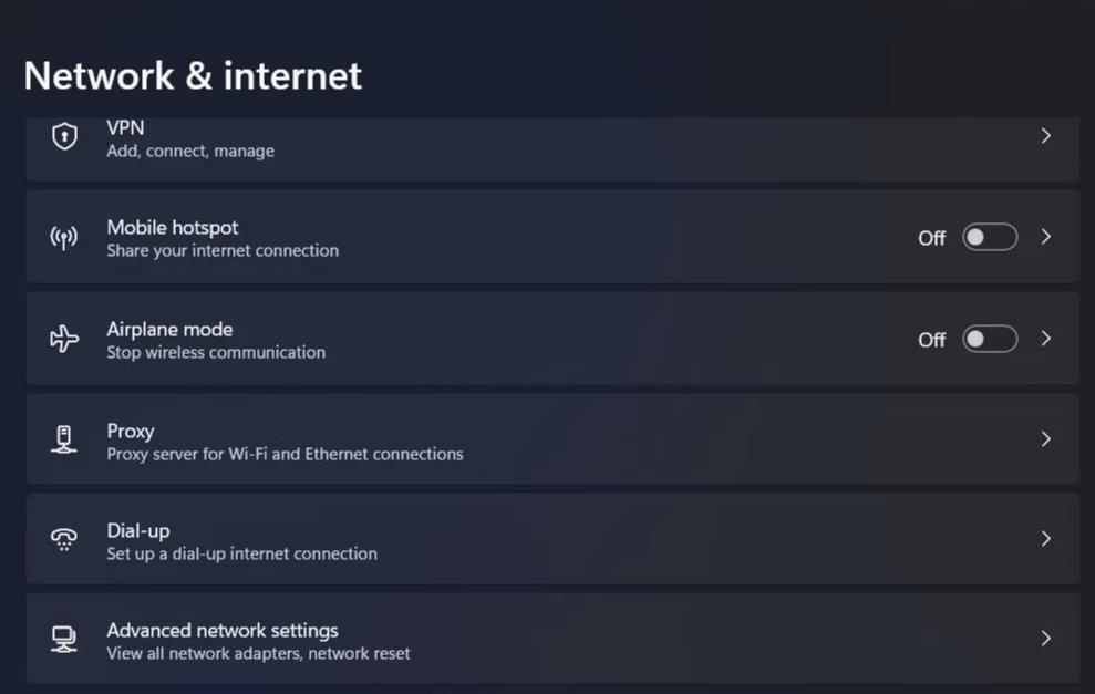 2. Adım:Sol bölmede Ağ ve İnternet sekmesini seçin.