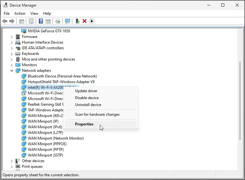 4. Adım:Bir ağ cihazına sağ tıklayın ve Özellikler'i seçin.