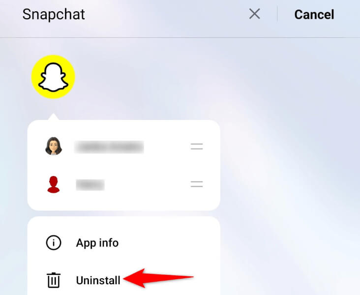- Dokunun ve tutunSnapchatUygulama çekmecenizde ve seçinKaldırmak.