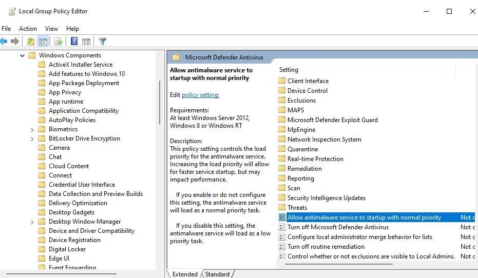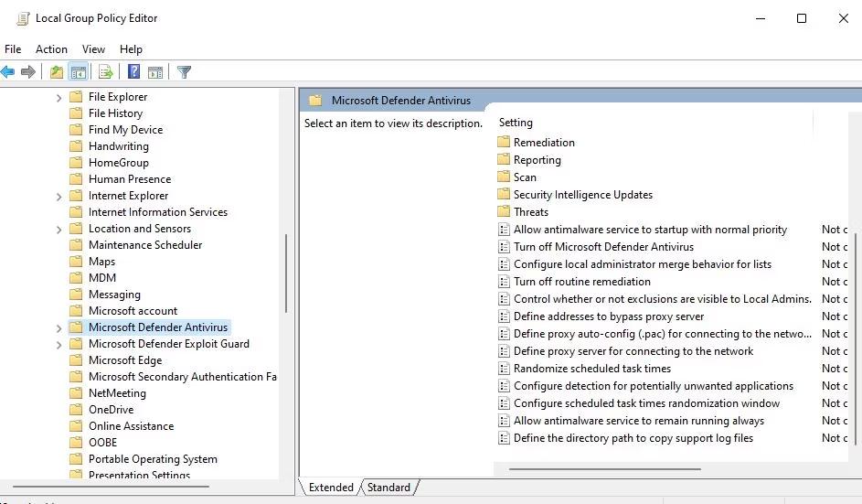 Bazı Windows Pro ve Enterprise kullanıcıları, Microsoft Defender Antivirus politikasını kapatmanın “Sayfa mevcut değil” sorununu çözdüğünü bildirmişlerdir. .Microsoft Defender Antivirus Grup Politikasını KapatınWindows Pro ve Enterprise'da ayar aşağıdaki gibi devre dışı bırakılabilir: