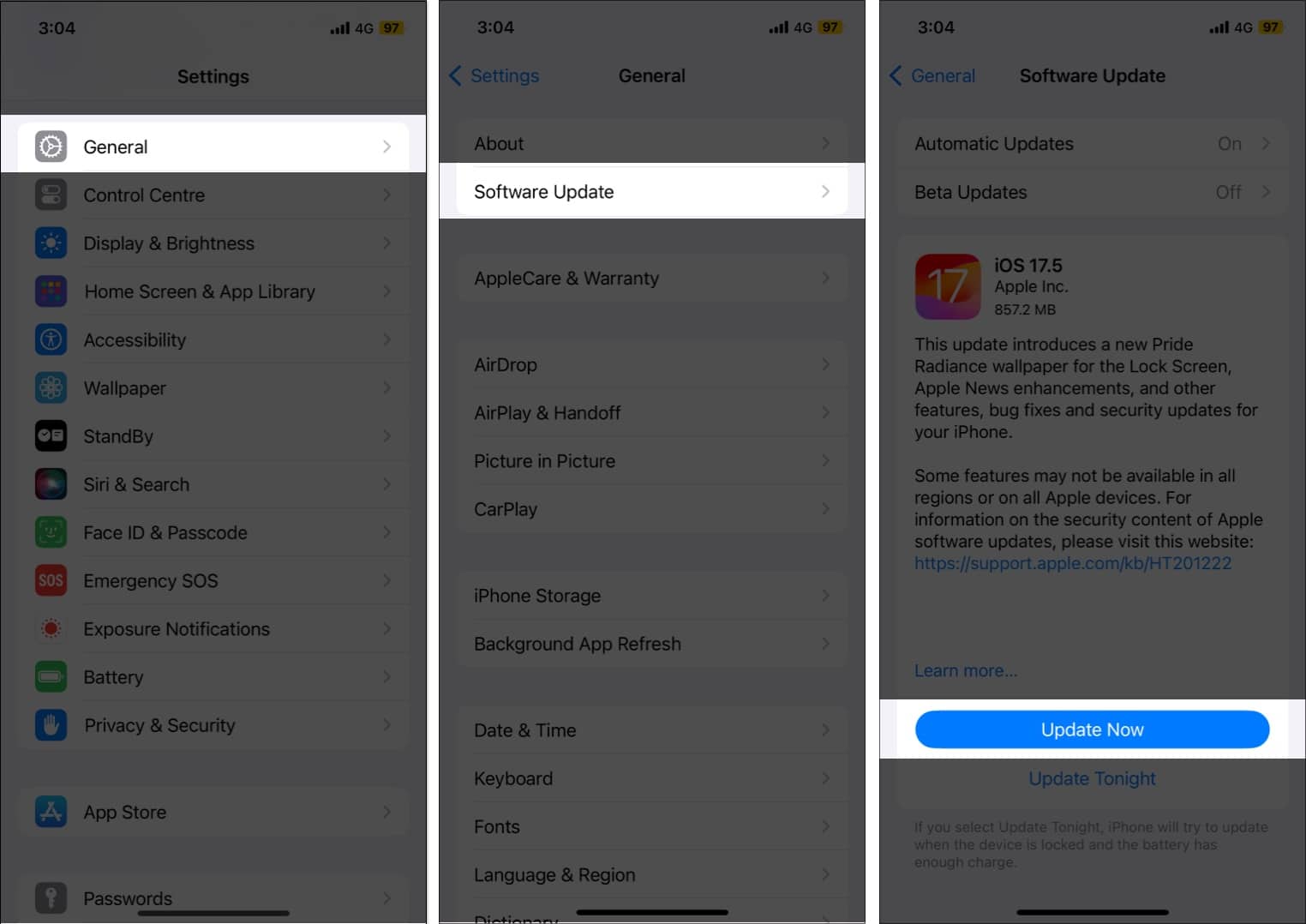 İPhone'unuzun yazılımını güncel tutmak aksesuarlarla uyumluluk için çok önemlidir. Apple proaktif olarak yalnızca işlevselliği geliştirmekle kalmayıp aynı zamanda hataları da düzelten yazılım güncellemelerini de dışarı atar. Bazen, bağlı aksesuarlarınızın yanlış bir şekilde “desteklenmediği” için olası bir düzeltme içerebilir.