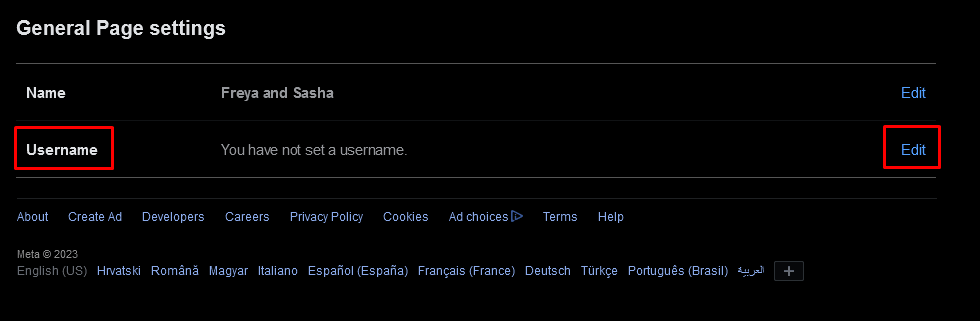 - Sayfanıza gitAyarlar. Genel bölümde tıklayınDüzenlemekyanındaKullanıcı adı.