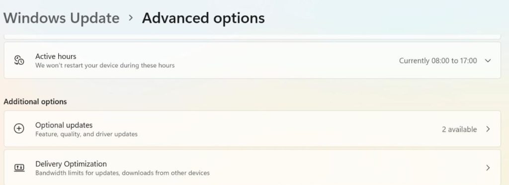 Adım 7:Aşağı kaydırın ve tıklayınİsteğe bağlı güncellemeler.