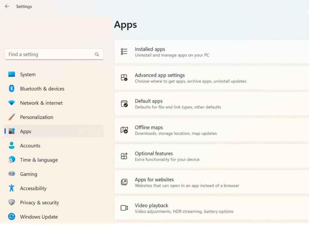 3. Adım:Ardından,Yüklü uygulamalarSağ panelde seçenek.