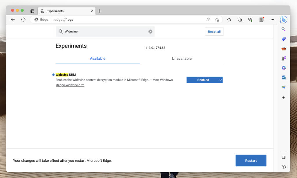 Microsoft Edge: TipEdge: // Bayraklaradres çubuğuna ve basınGirmek. Görünen deneyler ekranında yazınWidevine DRMiçineAramakkutu. Ardından, aşağı inen menüyü yanına açınWidevine DRMve seçVarsayılanveyaEtkinleştirilmiş.