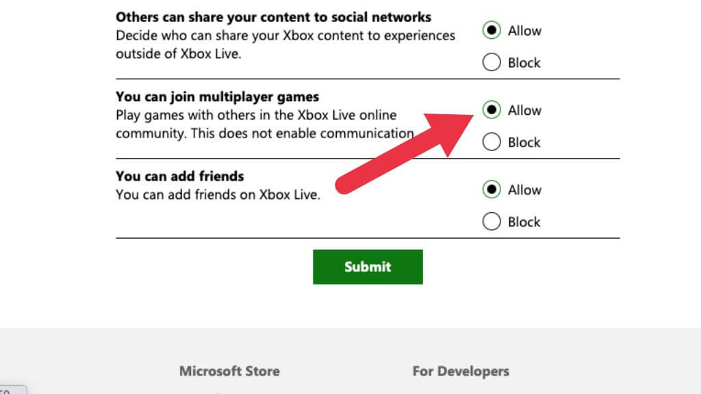 4. AltındaÇok oyunculu oyunlara katılabilirsiniz, emin olunİzin vermekseçildi.