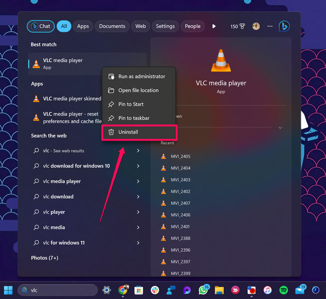 Yukarıdaki yöntemlerin hiçbiri Windows 11 PC'nizde veya dizüstü bilgisayarınızda çalışmayan VLC Media Player'ı çözmezse, uygulamayı yeniden yüklemeyi deneyebilirsiniz. Windows 11 PC'nizde veya dizüstü bilgisayarınızda VLC Medya Player'ı kaldırmak için aşağıdaki adımları izleyin ve ardından tekrar yükleyin:
