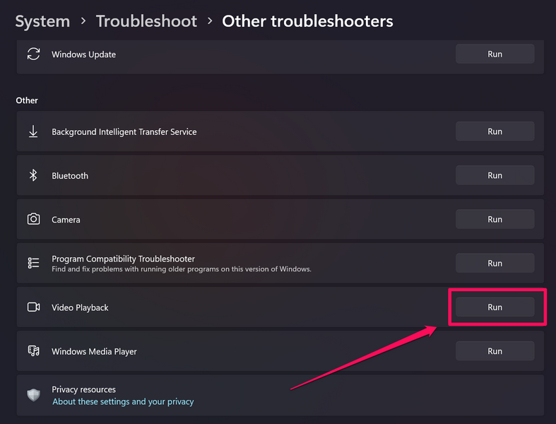 9. Windows 11'de Video Oynatma Sorun Giderici'yi çalıştırın