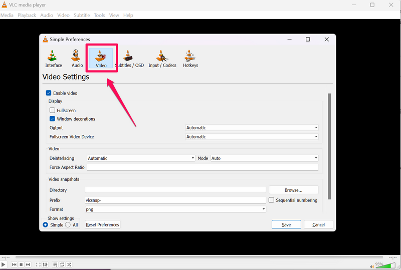6. VLC Media Player'da Varsayılan Video Çıktı Modunu değiştirin