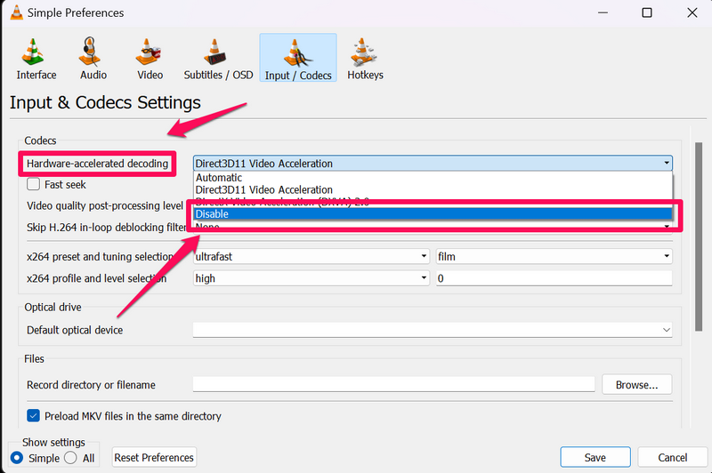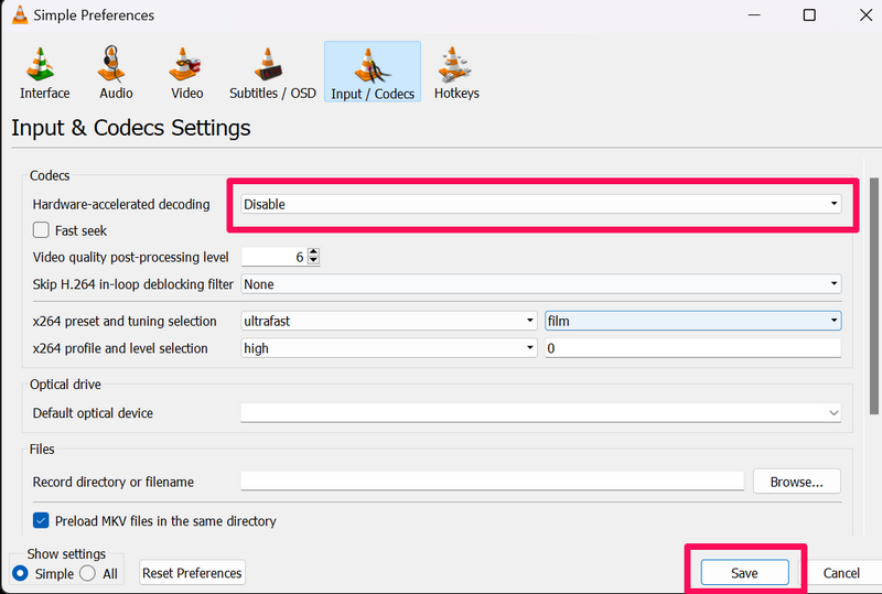 5. VLC Media Player'da Donanım Hızlandırılmış Kod çözmeyi devre dışı bırakın