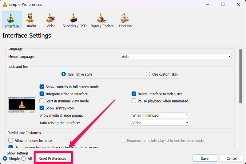 Bu durumda, Windows 11'de çalışma sorunu olmayan VLC Media Player'ı denemek ve çözmek için VLC Media Player içindeki söz konusu özelliği devre dışı bırakmak için aşağıdaki adımları kullanabilirsiniz: