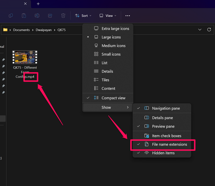 4.Şimdi yapabilirsinTüm dosyaların dosya biçimlerini görünWindows 11'de Dosya Gezgini'nde gösterilir. Bunları hemen görmüyorsanız, pencereyi yenileyin.