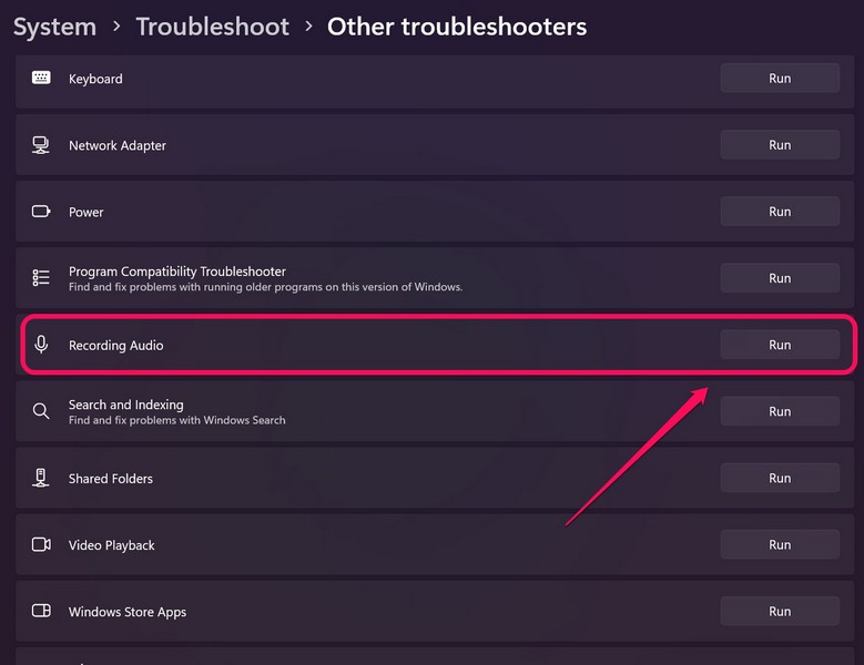 5. Kayıt Ses Sorun Giderici'yi Windows 11'de çalıştırın