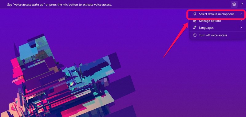 Şimdi, kullandığınız fiziksel mikrofon iyiyse ve yine de Windows 11 cihazınızda sesli olmayan çalışma sorunuyla karşılaşıyorsanız, sesli erişim özelliği için varsayılan mikrofon kümesini kontrol etmek isteyebilirsiniz.