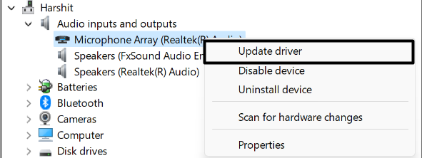 Şimdiye kadar hiçbir şey yardımcı olmazsa, mikrofon sürücüsündeki bazı hatalar ve aksaklıklar nedeniyle bu sorun meydana gelebilir. Bu durumda deneSisteminizin mikrofon sürücüsünü güncellemesorunu çözüp çözmediğini görmek için.