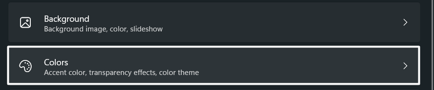 2.Bir kezKişiselleştirmeBölüm açıldı,RenkSisteminizin temasını özelleştirmek için bölüm.