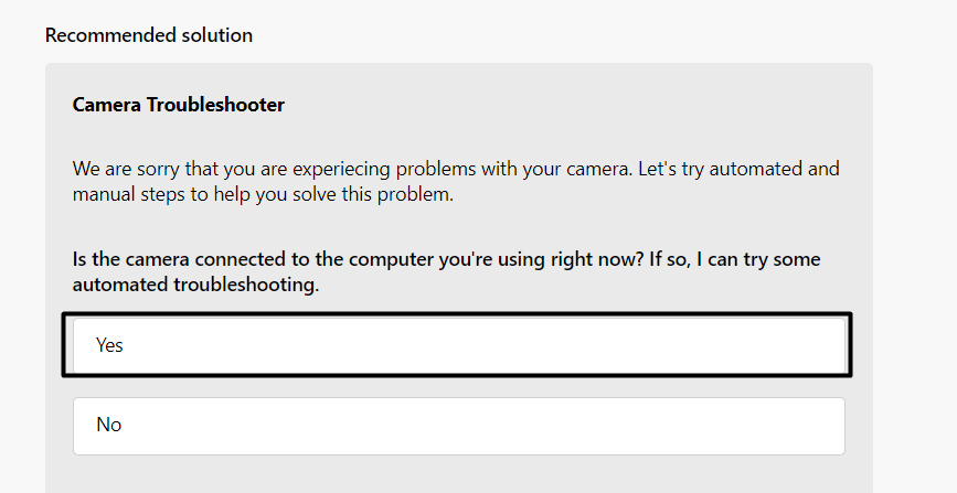 4.Bir kezYardım almakUygulama açıldı, seçinEvetSistemin kamerasındaki sorunlar için otomatik bir arama çalıştırmak için.