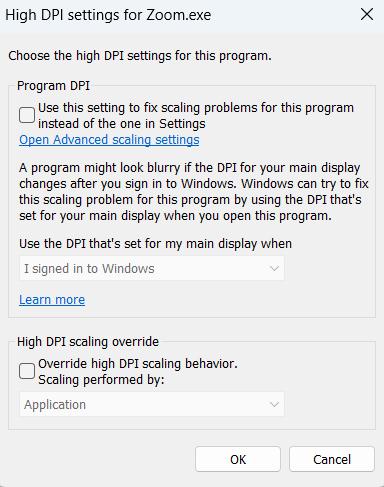 - Uygulamanız veya harici monitörünüz yüksek DPI ölçeklendirmesini desteklemez.