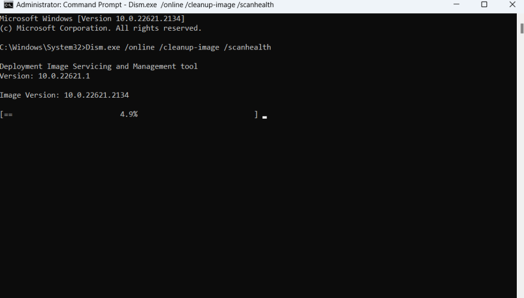 Dism.exe /online /cleanup-image /scanhealth(Enter tuşuna basın)