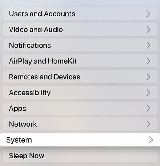 - Aşağı kaydırınSistemSeçenek ve üzerine tıklayın.