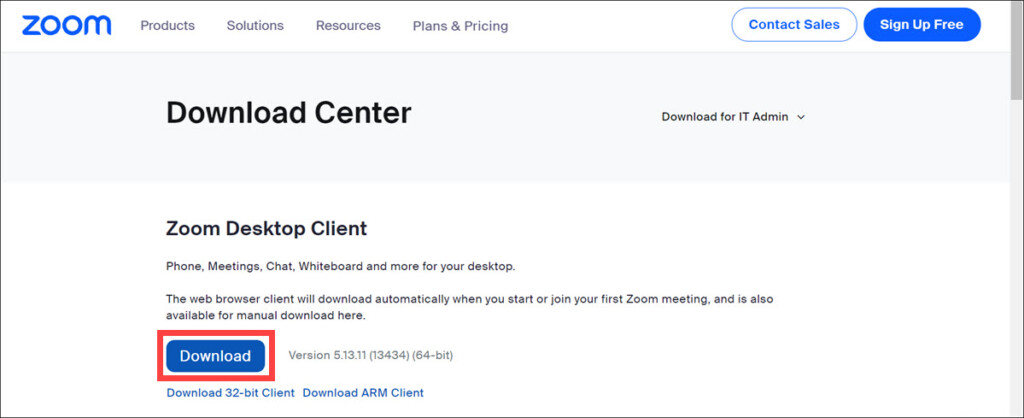 7.TıklayınİndirmekMasaüstü için Zoom'un en son sürümünü indirmeye başlamak için düğme.