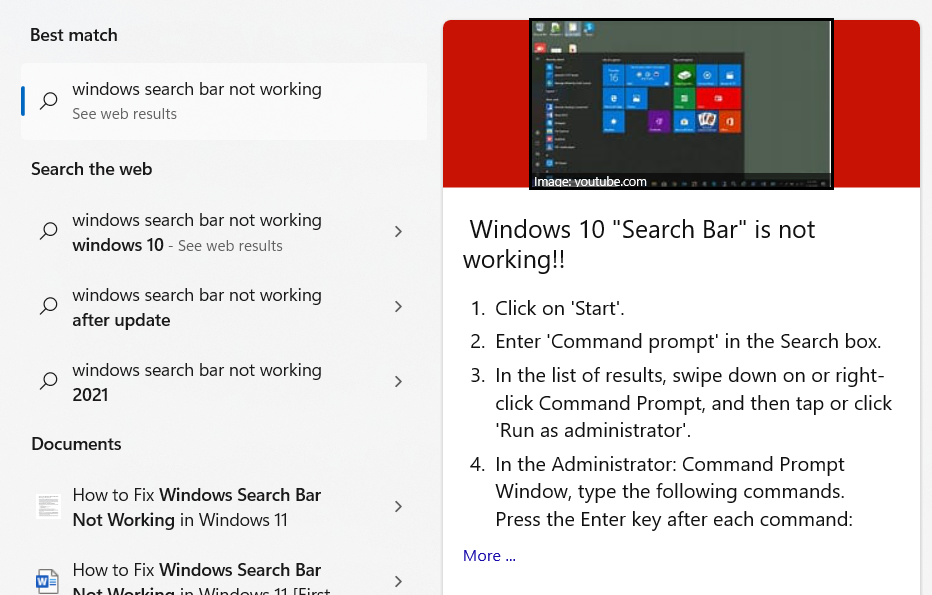 Windows 11'de yardım almanın yollarından biri Windows arama çubuğunu kullanmaktır. Microsoft'un teknik destek ekibi, sorunu Windows arama çubuğuna yazmanın sizin için en iyi çözümleri getireceğini önerdi. Windows 11'de yardım almanın ve herhangi bir Windows-11 hatasını düzeltmenin en kolay yollarından biri olduğu bilinmektedir.
