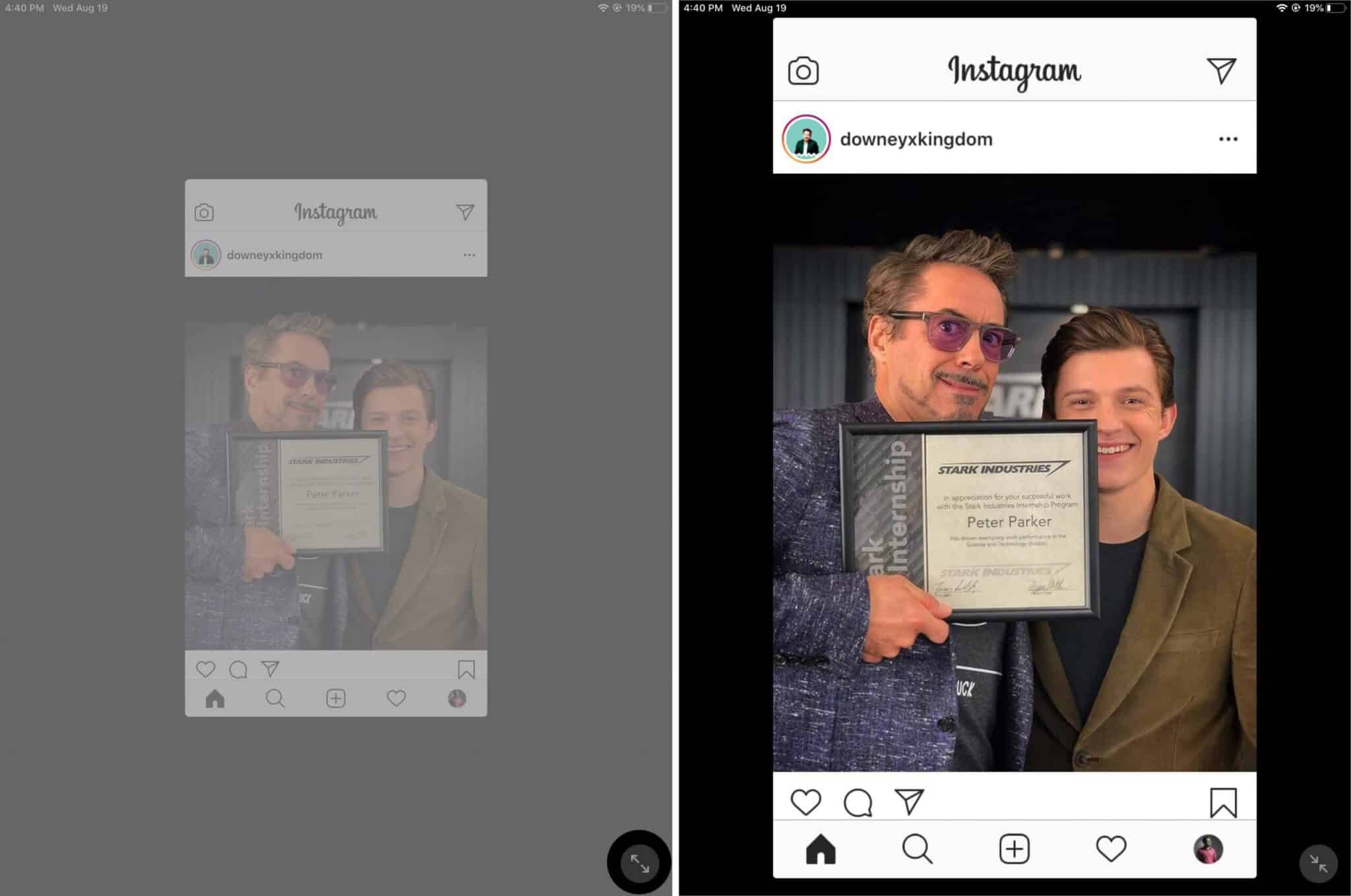 Instagram uygulamasının bir iPhone'un çözünürlüğünü işgal ettiğini görebilirsiniz. Çünkü bir iPad için belirli bir uygulama geliştirmediler. Ancak, çözünürlüğü 2x olarak değiştirebilirsiniz, bu da uygulamanın yakınlaştırılmasını sağlayacaktır. Bunu yapmak için,dış oklarUygulamanın sağ alt köşesinde düğme.