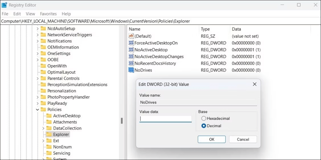 Adım 7:Nodrives DWORD'a iki kez tıklayın.