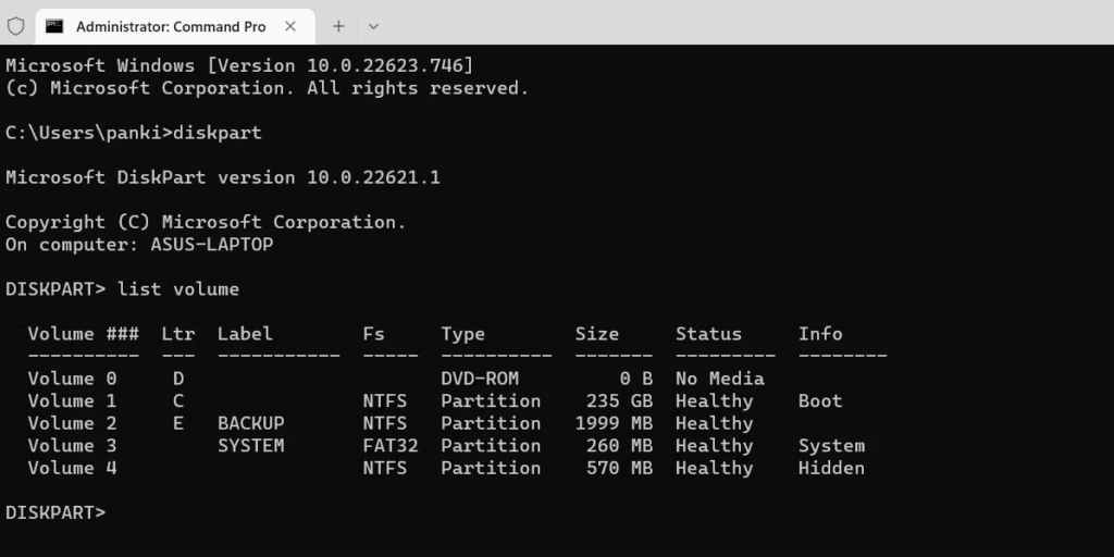 Bu adımları izleyerek komut istemini kullanarak diskPart yönetimini kullanarak pencerelerde bir sürücüyü gizleyebilirsiniz: