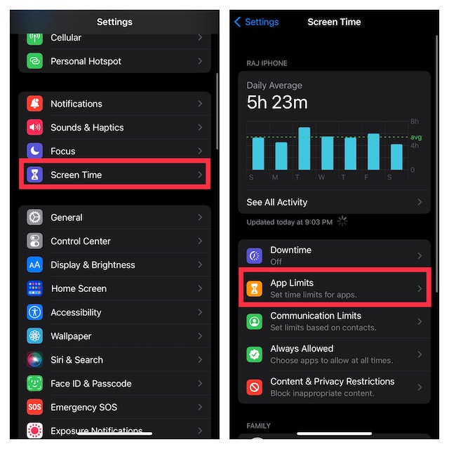 2. Ekran zaman ayarlarını kullanarak iPhone'daki konuşmaları gizleyin