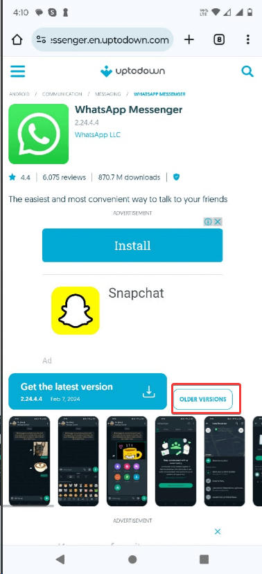 Çözüm No. 2 - WhatsApp'ın eski bir sürümünü kullanın