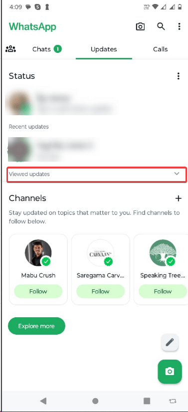 Çözüm No. 1 - WhatsApp kanallarını güncellemeler menüsünden gizle