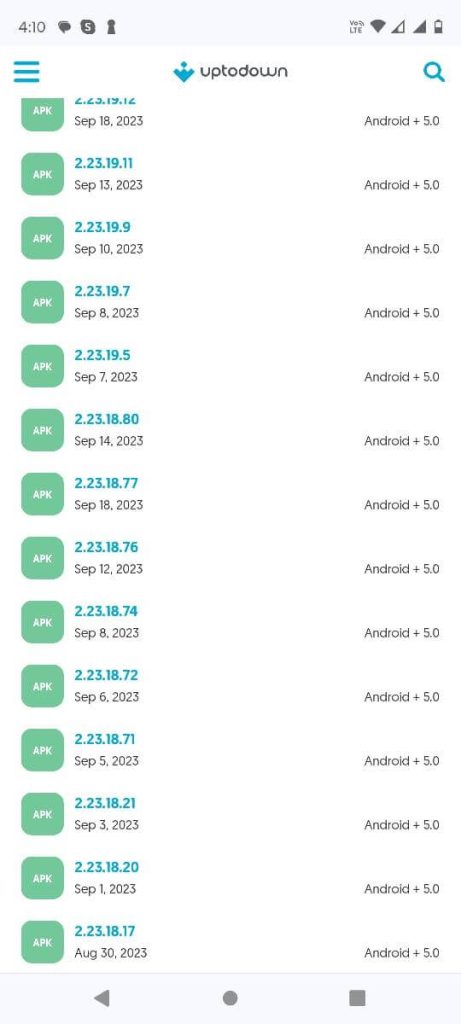 ApkMirror ve Uptodown, WhatsApp'ın eski sürümünü yükleyebileceğiniz bazı güvenilir platformlardır. WhatsApp'ın şu anki sürümünü kaldırmadan önce,Sohbetlerinizin Yedeklemesiönceden.