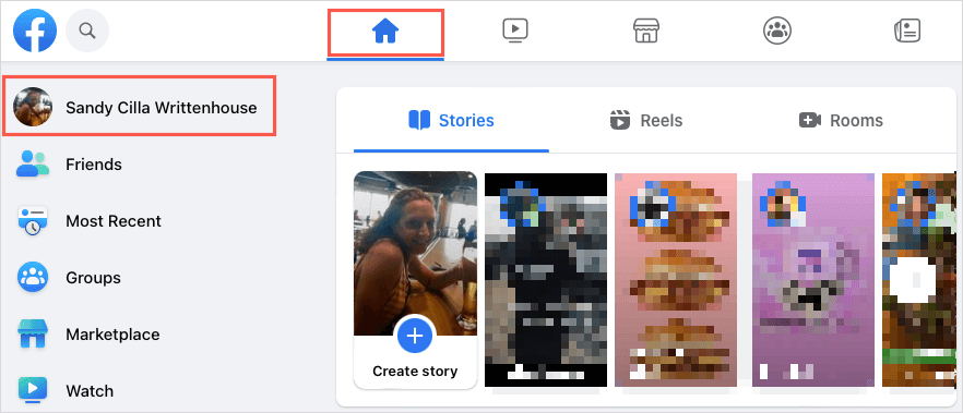 - Seçinprofil adıFacebook profilinizi görüntülemek için soldaki kenar çubuğunda.