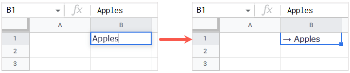 - Sembol hücrede göründüğünde, liste öğenizi önünde veya önünde boşluk olmadan ekleyin.