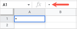 - İlk kurşun noktanızı Mac'teki bir hücreye eklemek için hücreyi seçin veAnahtar kombinasyonunu kullanın Seçenek + 8.