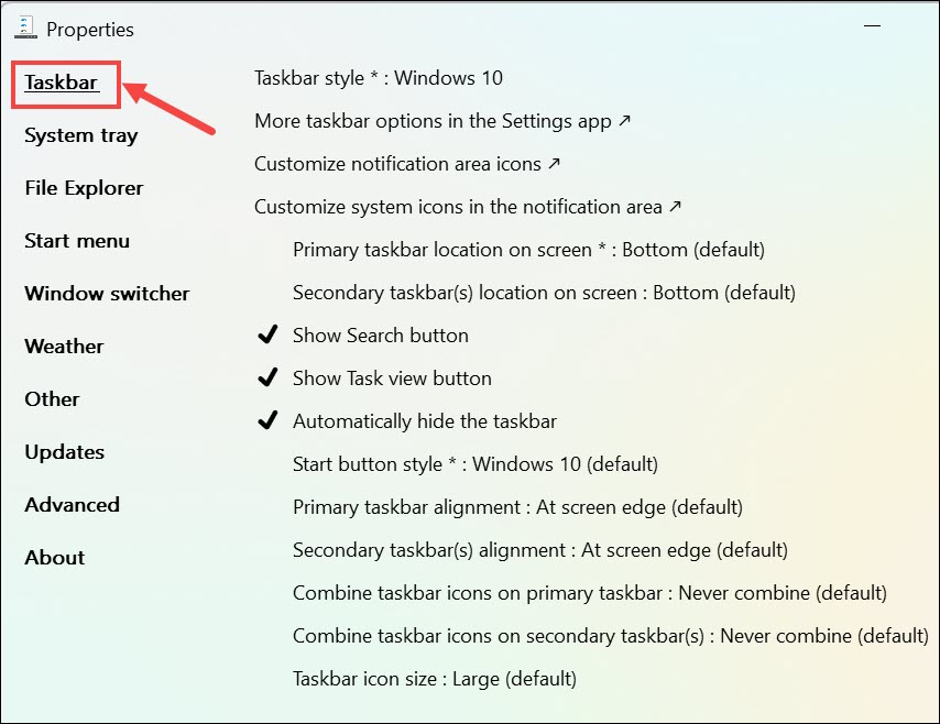 ExplorerPatcher'ı kullanarak görev çubuğu görünümünü özelleştirmek için: