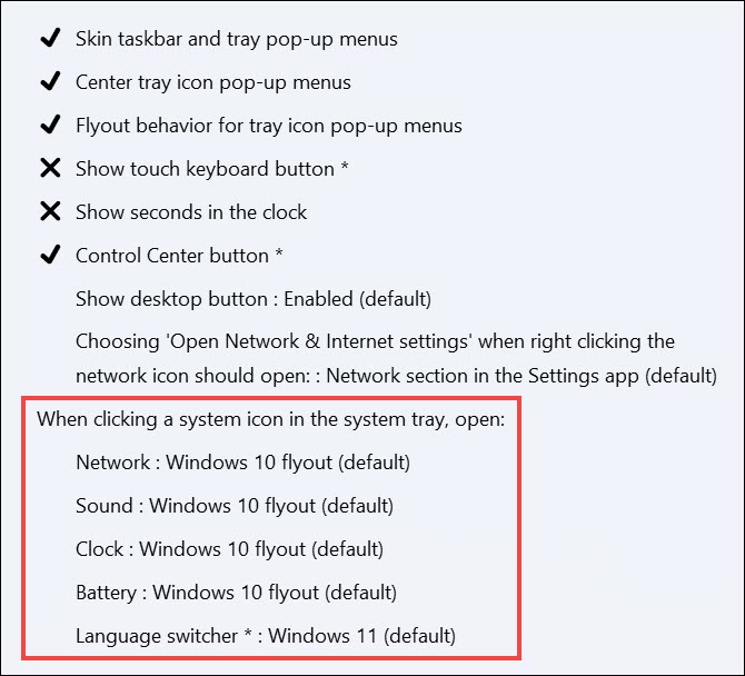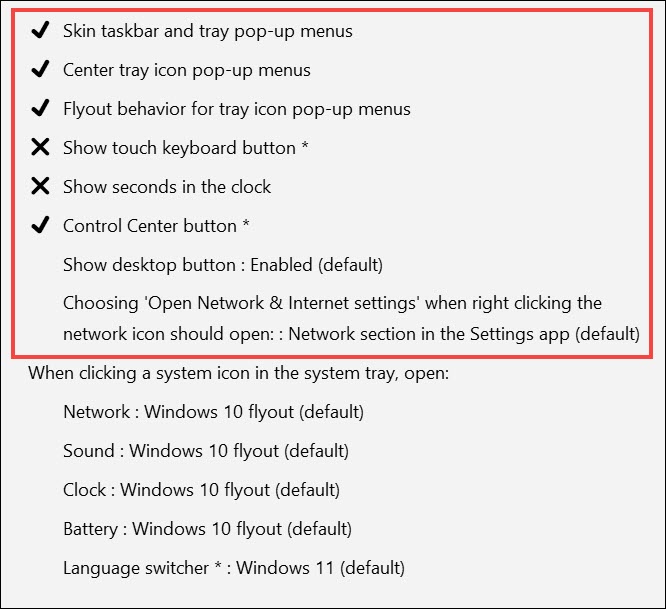 Sistem Tepsisi Seçenekleri: Yardımcı program, kullanıcıların sistem tepsisi simgelerini özelleştirmelerine olanak tanır ve hangi simgelerin düzenlemelerini görüntüleyeceğini ve ayarlanacağını seçmelerine olanak tanır. Kullanıcılar sistem tepsisini kolayca uzaklaştırabilir.