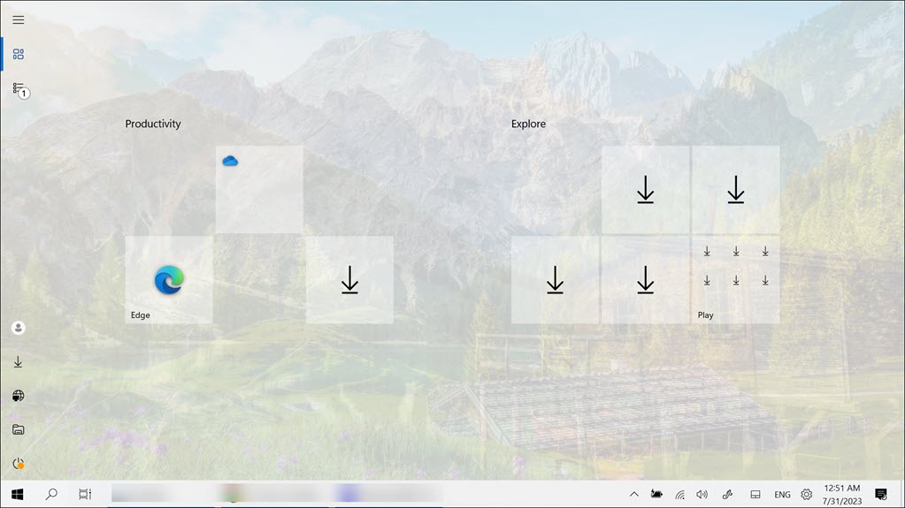 2.ExplorerPatcher arayüzünde,Başlat menüsüsoldaki bölüm.
