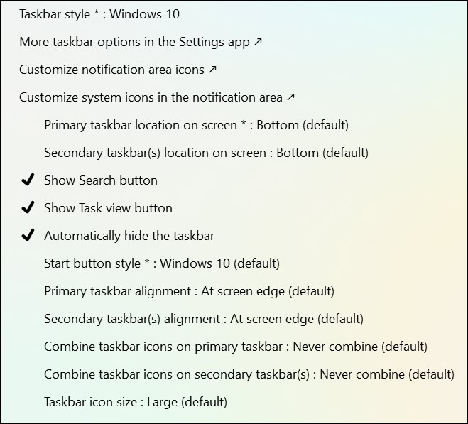 Görev çubuğu stili: Windows 10 veya Windows 11 tarzı görev çubuğunu isteyip istemediğinizi belirleyin