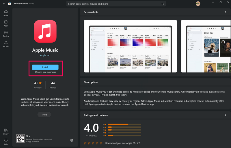 Ancak, devam etmeden önce, uygulamadaki müzik akışı hizmetine erişmek için bir Apple Kimliği ve aktif bir Apple Music aboneliğine ihtiyaç duyacağınızdan bahsetmeye değer. Bununla birlikte, Apple Music uygulamasını Windows 11 cihazınıza nasıl yükleyeceğinizi öğrenmek için aşağıdaki adım adım kılavuza bir göz atın: